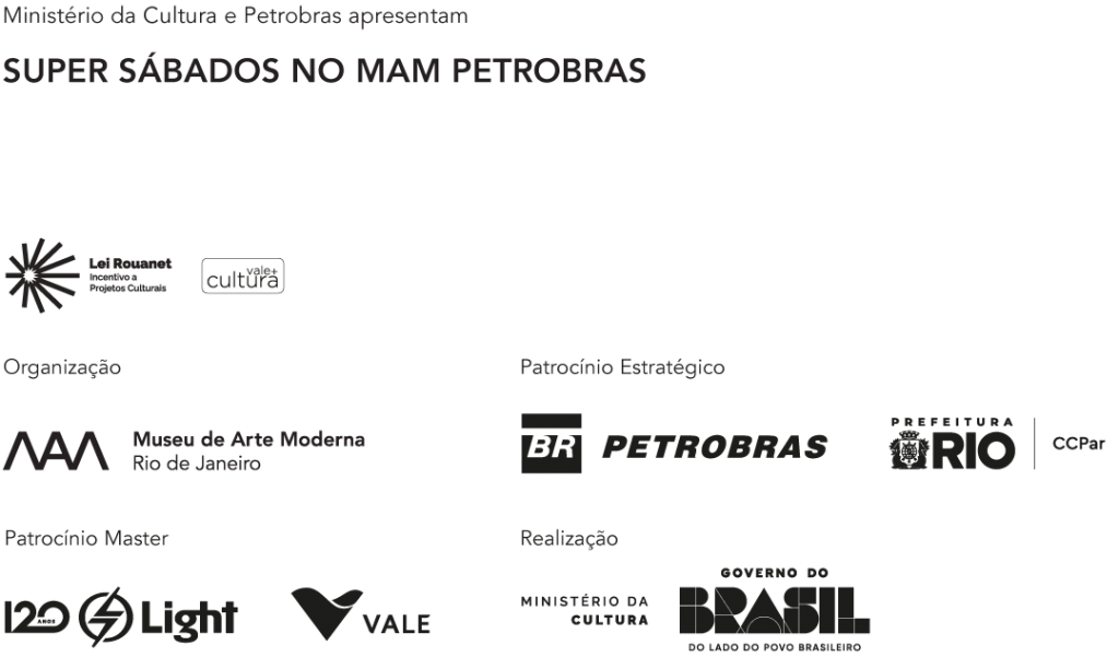 Uma vez por mês, o MAM Rio apresenta Super Sábados no MAM Petrobras, programa de eventos na área externa do museu que investiga diferentes linguagens artísticas. Com patrocínio da Petrobras, serão realizadas 12 edições ao longo de 2025, ocupando o entorno do museu com dinâmicas de carácter participativo, sempre aos sábados.